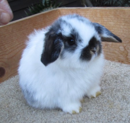 PATCHES, Bunnylops Junior Broken Black Holland Lop Doe (Thundering Oaks’ Dylan, Sable Point x BunnyLops’ Calligraphy, Broken Chocolate) went home to North Augusta, South Carolina to live with Laura.