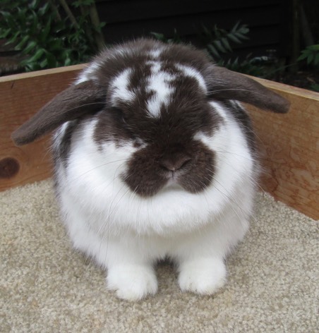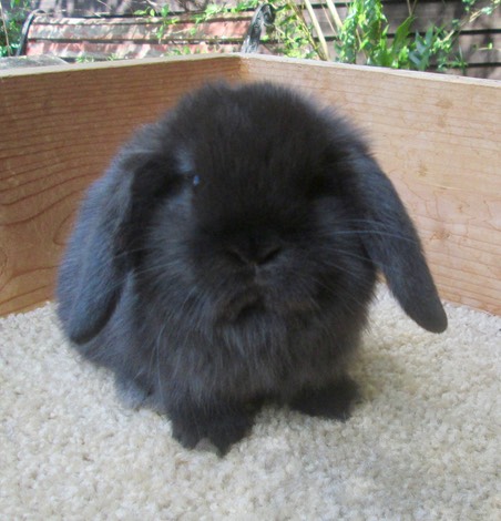PHOEBE, Bunnylops Junior Broken Black Otter Holland Lop Doe (BunnyLops’ Tolstoy, Broken Chocolate x DreamBunnies DK2 ’Shura’, Broken Black Otter, Charlie) went home to Athens, Georgia to live with Will.