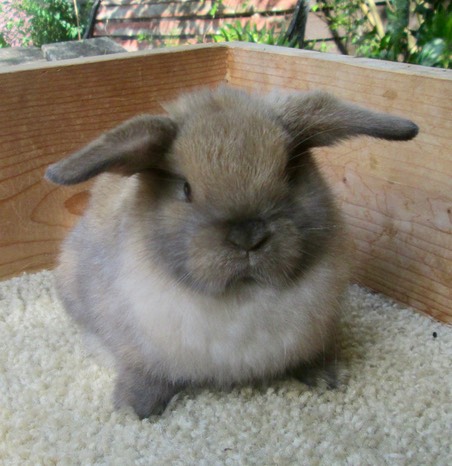 Bunnylops Junior Blue Holland Lop Doe (BunnyLops’ Finch, Blue x BunnyLops’ Sophia, Chocolate) went home to Tampa, Florida to live with Abigail & Cotton.